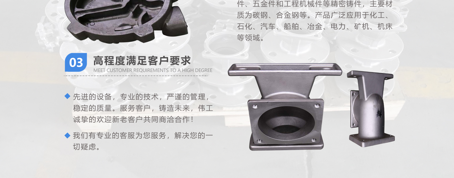 安徽偉工機械科技有限公司,坐落于安徽蕪湖新蕪經(jīng)濟開發(fā)區(qū),是一家専業(yè)從事鑄造產(chǎn)品設計、研發(fā)、生產(chǎn)、銷售于一體的企業(yè),公司為客戶的產(chǎn)品提供多樣的技術支持與設計,公司主要鑄造技術有潮模砂鑄造、硅溶膠精鑄工藝。主要產(chǎn)品有:不銹鋼閥門配件、泵閥配件、汽車配件、工業(yè)管道配件、工程機械配件、汽車配件等。材質為:低合金鋼、304、316、316L、鉻鉬鋼、哈氏合金、碳鋼、雙相鋼等。公司已先后通過ISO9001和TS16949等多種體系審核,以完備的管理手段和齊全的檢測設備滿足客戶需求,進的設備,専業(yè)的技術,嚴謹?shù)墓芾恚€(wěn)定的質量。服務客戶,鑄造未來,偉工誠摯的歡迎新老客戶共同商洽合作